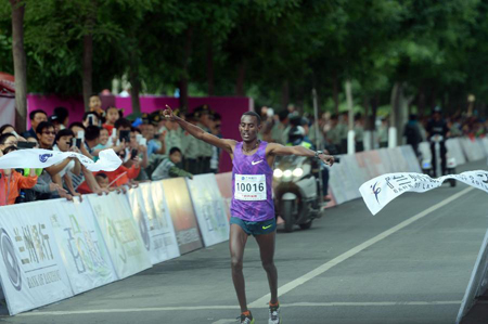 埃塞俄比亞選手阿亞勒·沃爾德·喬治斯率先沖過終點(diǎn),以2小時(shí)10分10秒的成績獲得男子全程冠軍。