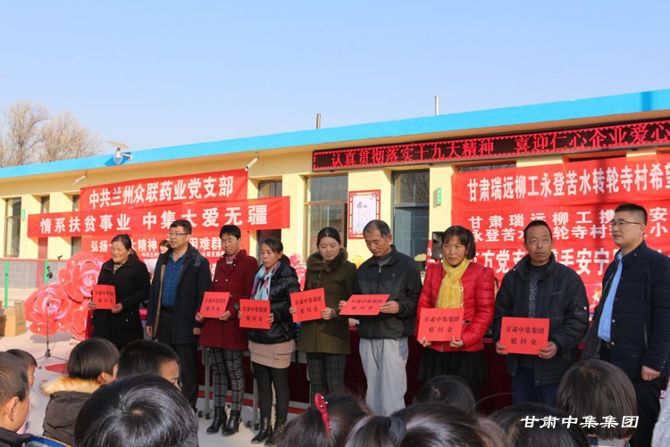 為踐行黨的十九大精神,充分發(fā)揚(yáng)企業(yè)社會(huì)擔(dān)當(dāng)。2017年12月1日下午,甘肅中集實(shí)業(yè)集團(tuán)有限公司攜手安寧區(qū)非公委及安寧區(qū)五家非公企業(yè),前往永登縣苦水鎮(zhèn)轉(zhuǎn)輪寺村開展“扶貧幫困 我們?cè)诼飞稀贝壬凭栀?zèng)活動(dòng)。
